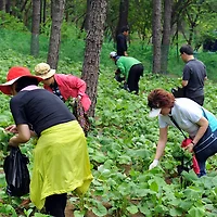 정선군 화암면 주민들이 곤드레 나물을 채취하고 있다.<정선군 제공>