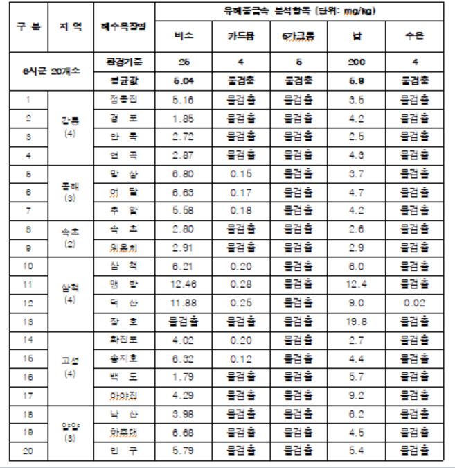 카드뮴과 6가크롬, 수은은 아예 검출되지 않았다.