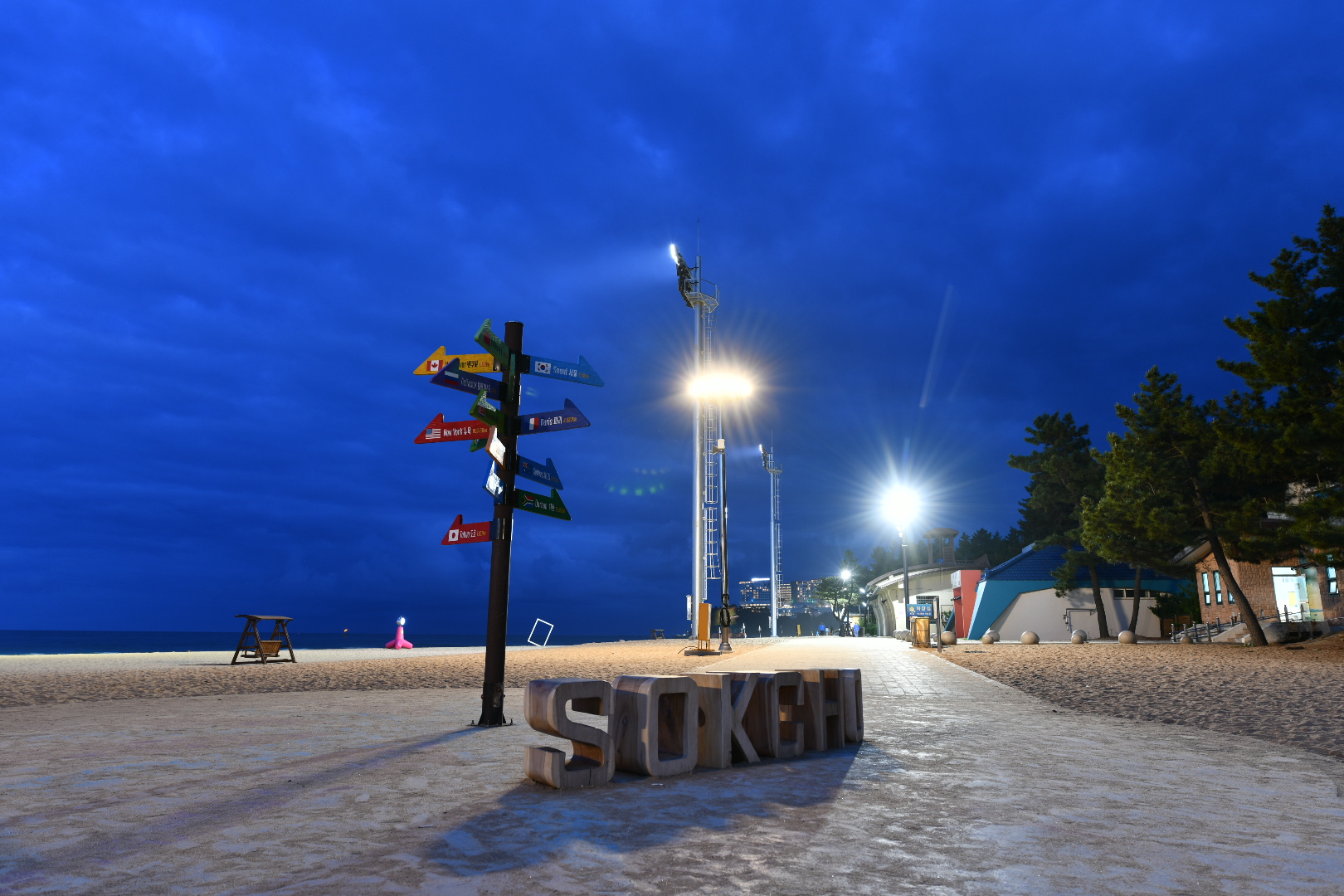 속초시는 속초해수욕장의 야간 개장을 위해 바다를 비출 수 있는 고성능 투광조명등 2개를 백사장에 설치한데 이어 수영한계선에도 LED(발광 다이오드) 부표를 추가로 설치하기로 했다.