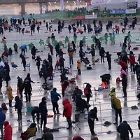 하지만 이번 겨울에는 수차례에 걸쳐 60㎜ 이상의 비가 쏟아지면서 화천천의 얼음이 두께 10㎝ 정도까지 녹아 불가피하게 축제 일정을 조정할 수밖에 없게 됐다.
