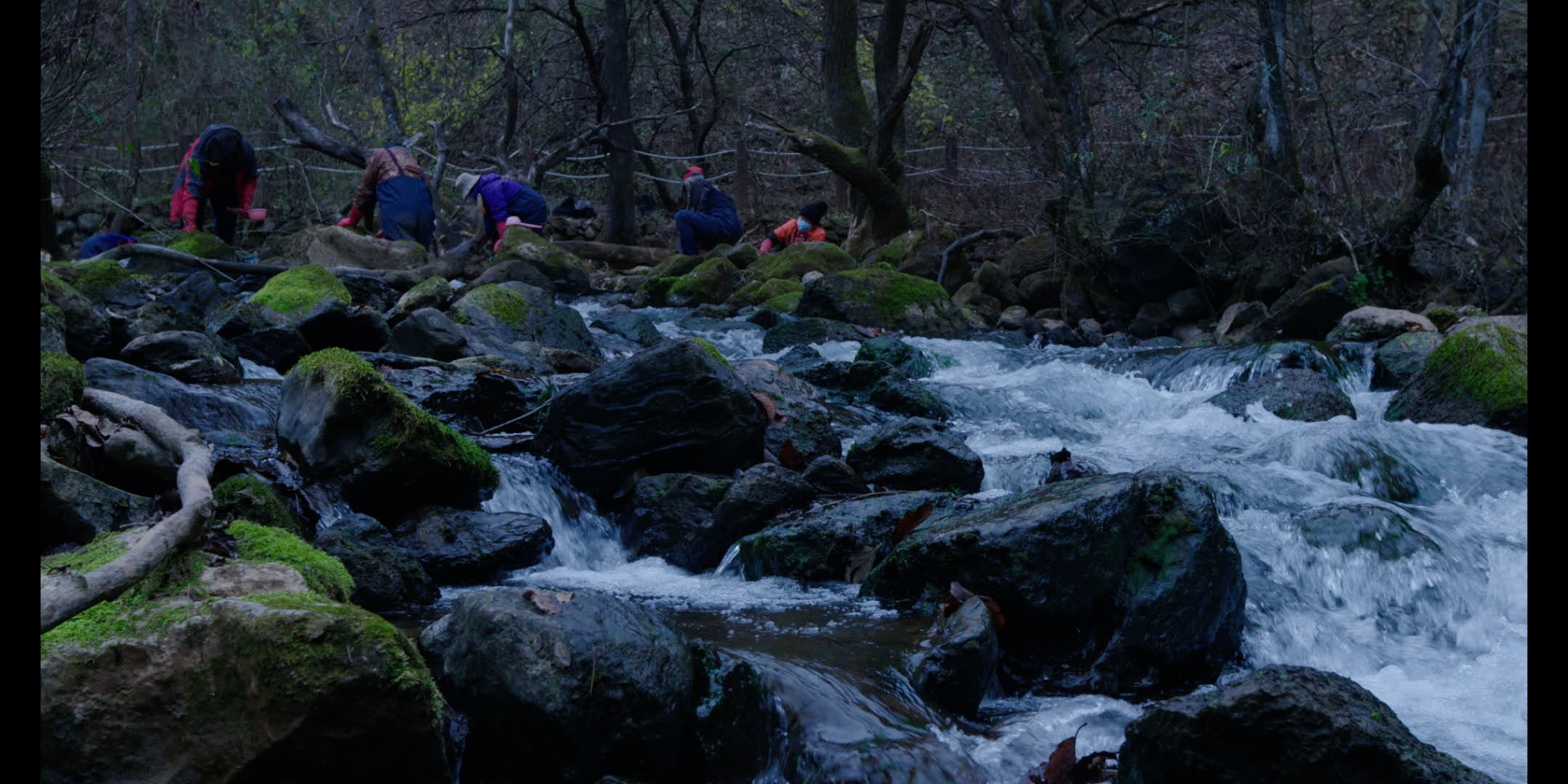 강원 삼척시 근덕면 소한계곡에서 민물김을 채취하는 장면. 삼척시 제공