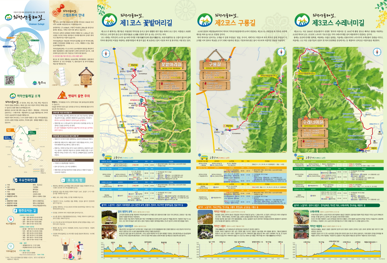 이번에 개통된 3개 코스는 원주시 행구동 국형사에서 소초면 치악산 국립공원사무소를 지나 횡성군 태종대까지 이어지는 33.1㎞ 구간이다.