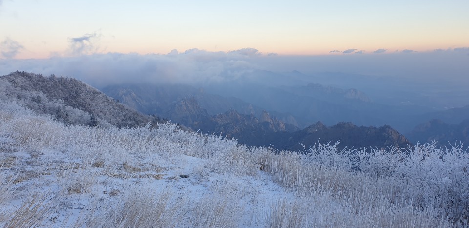 12월 18일 강원 산간지역에 한파경보가 발효된 가운데 설악산 대청봉 등 고지대에 눈이 내려 아름다운 풍광을 연출하고 있다.